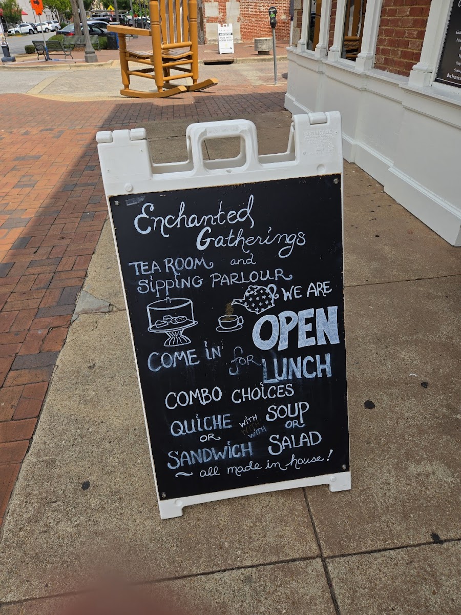 Welcome to Enchanted Gatherings Tea Room and Cafe, a charming spot located at 126 N Court St, Florence, AL. This delightful cafe offers a menu that is as enchanting as its name, featuring options like the refreshing Signature Salad and the comforting Soup of the Day, both priced at a reasonable $12.00.