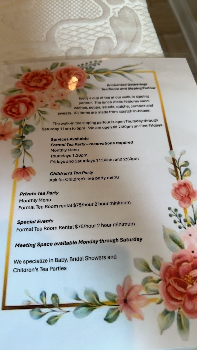 Enchanted Gatherings Tea Room and Cafe Menu